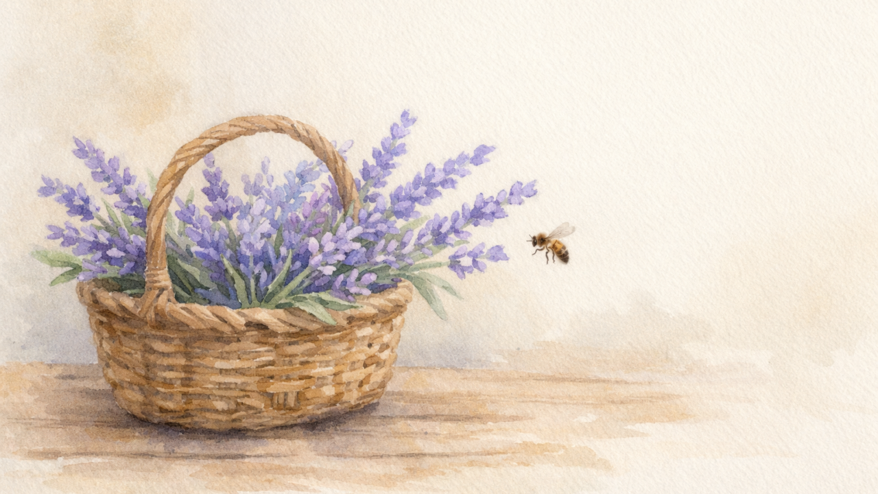 籠に入ったラベンダー。